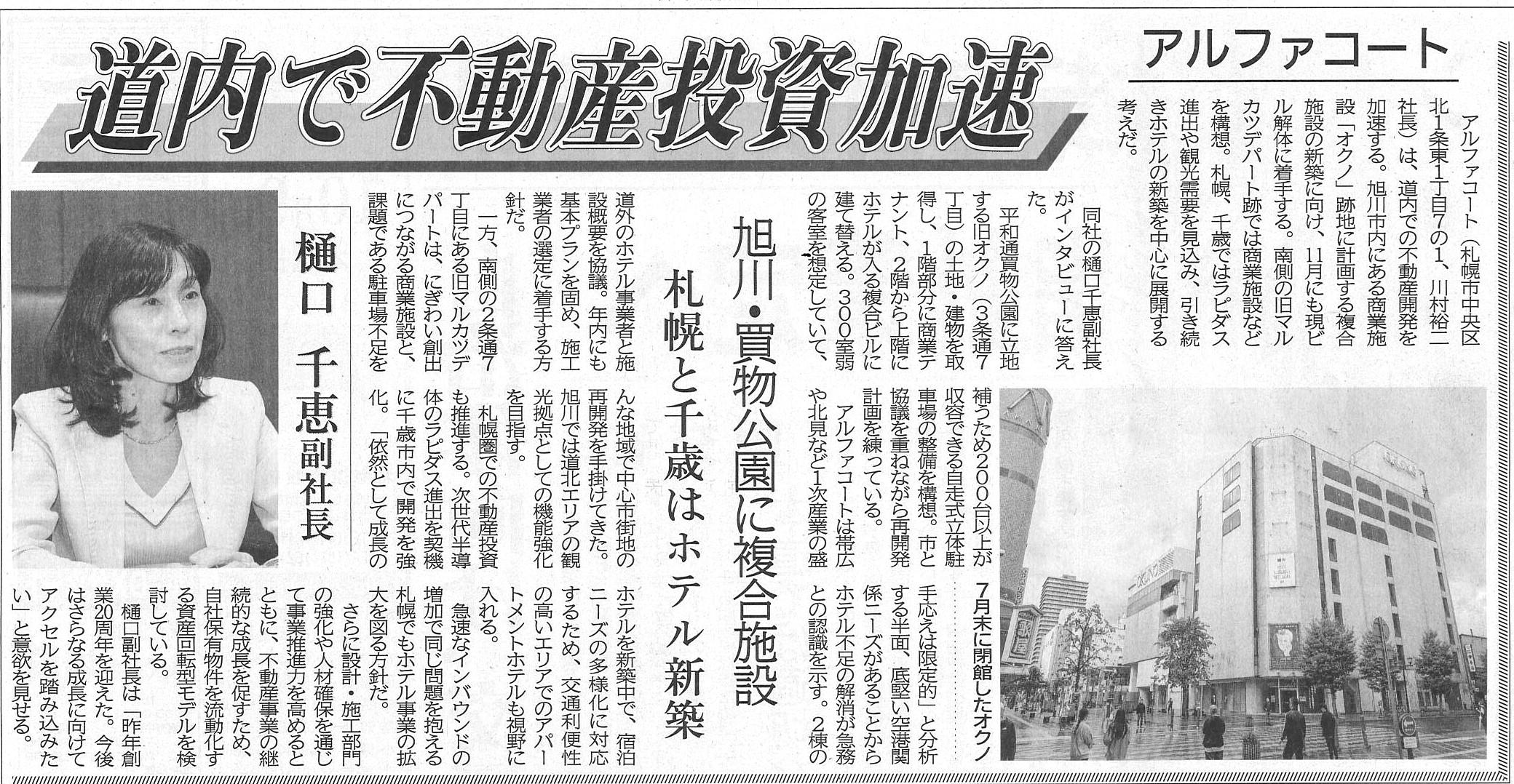 アルファコート 道内で不動産投資加速